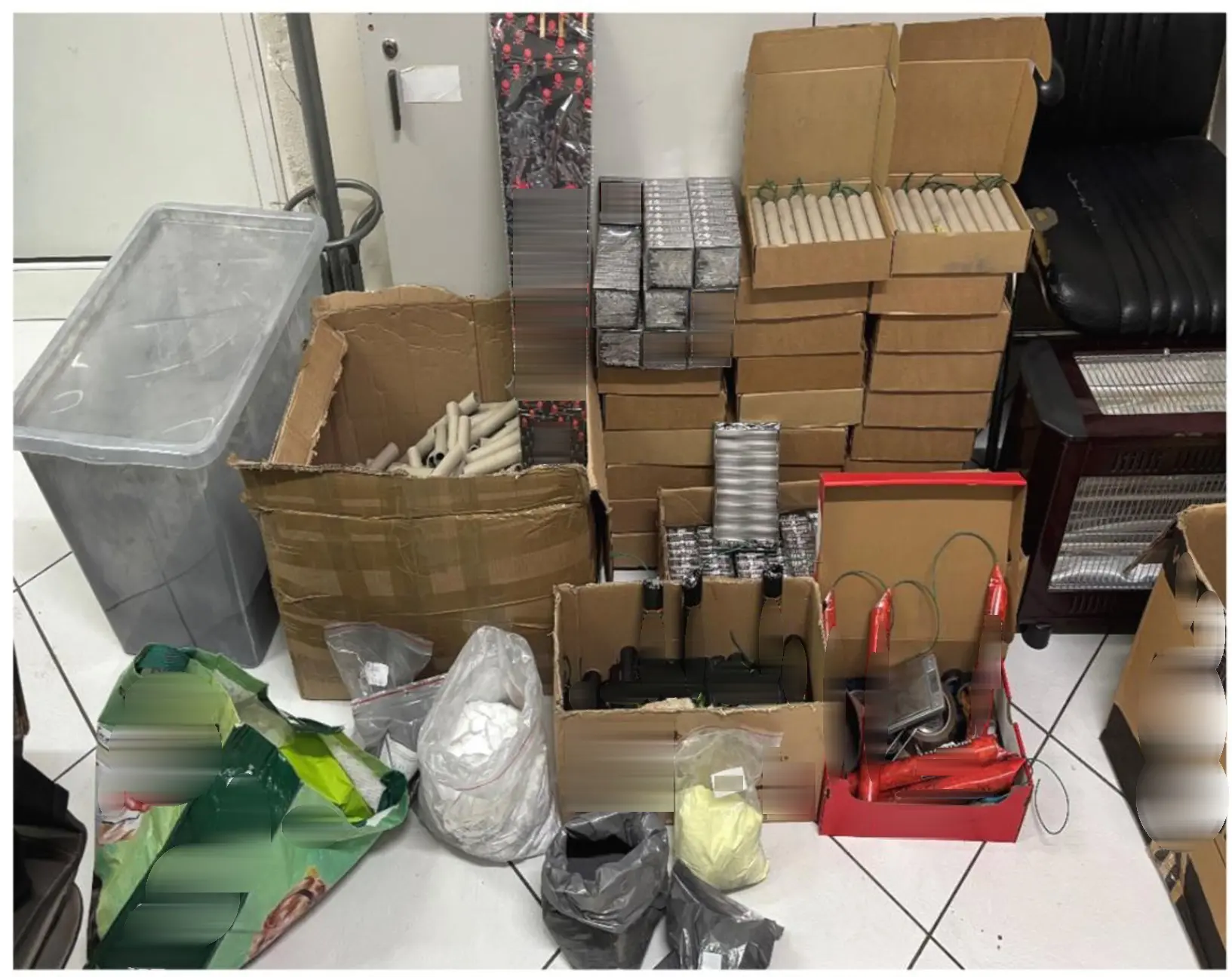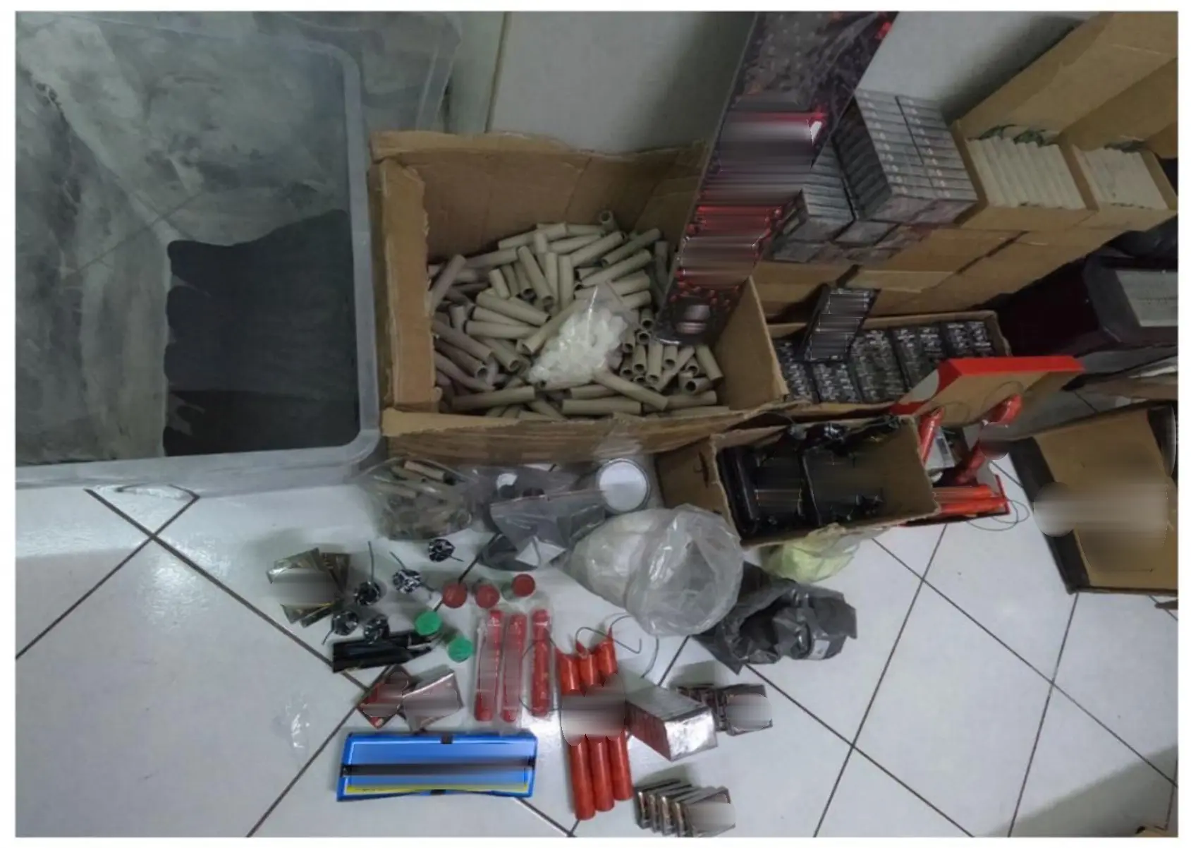 Κατά τη διάρκεια των ερευνών κατασχέθηκαν συνολικά 5.842 έτοιμες κροτίδες, οι οποίες προστέθηκαν στις αρχικές 728, ανεβάζοντας τον συνολικό αριθμό πάνω από τις 6.500. Επιπλέον, βρέθηκαν 5,5 κιλά πυρίτιδας, 3,2 κιλά σκόνης αλουμινίου και 3 κιλά νιτρικού καλίου, υλικά που αποτελούν τη βάση για την κατασκευή ισχυρών εκρηκτικών μηχανισμών.