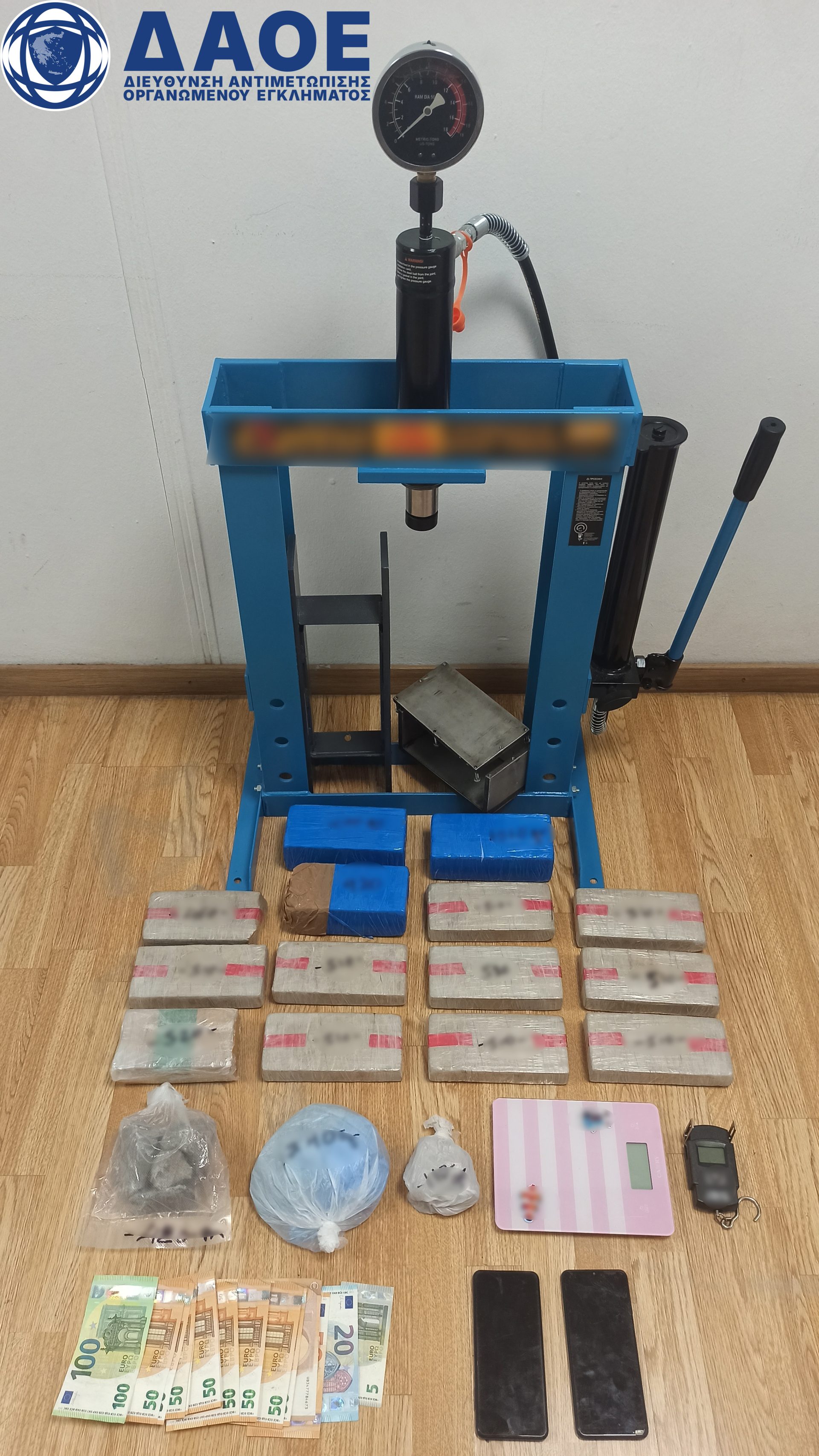 - Κατασχέθηκαν δύο οχήματα, ζυγαριές ακριβείας και κινητά τηλέφωνα.