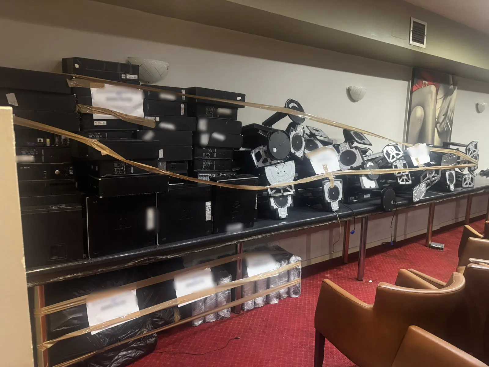 - Κατασχέθηκαν 250 υπολογιστές, όπλα, μετρητά και πλαστά χαρτονομίσματα.