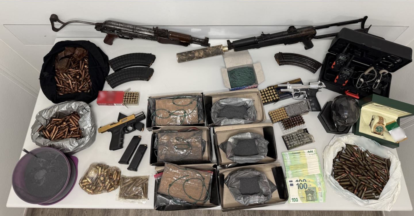 Κατά τη διάρκεια της αστυνομικής επιχείρησης που έλαβε χώρα το μεσημέρι της Παρασκευής 27 Φεβρουαρίου 2026, οι αρχές εντόπισαν ένα πραγματικό οπλοστάσιο. Στις οικίες των κατηγορουμένων κατασχέθηκαν όπλα, ανάμεσα στα οποία 2 πολεμικά τυφέκια, 3 πιστόλια και πάνω από 1.000 φυσίγγια διαφόρων διαμετρημάτων.