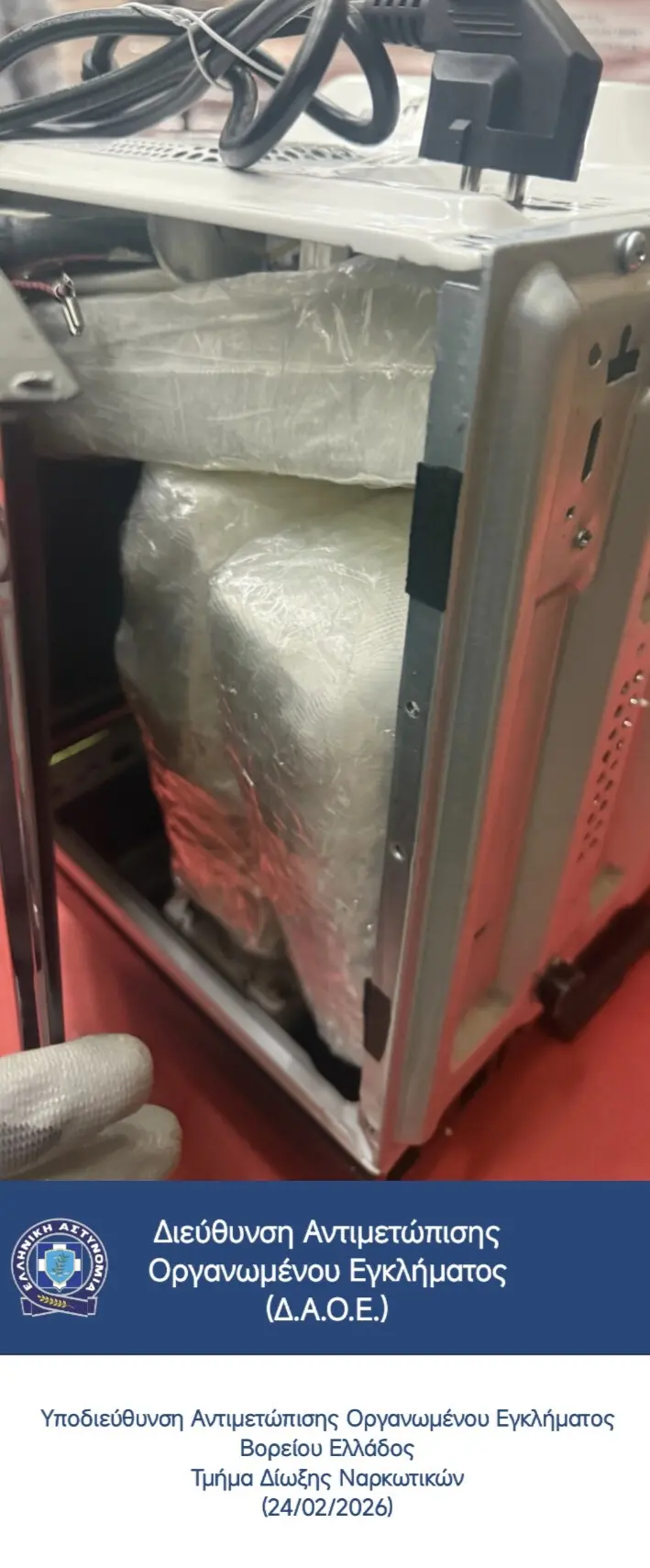 - Κατασχέθηκαν 2.927 γραμμάρια κοκαΐνης κρυμμένα σε φούρνο μικροκυμάτων.