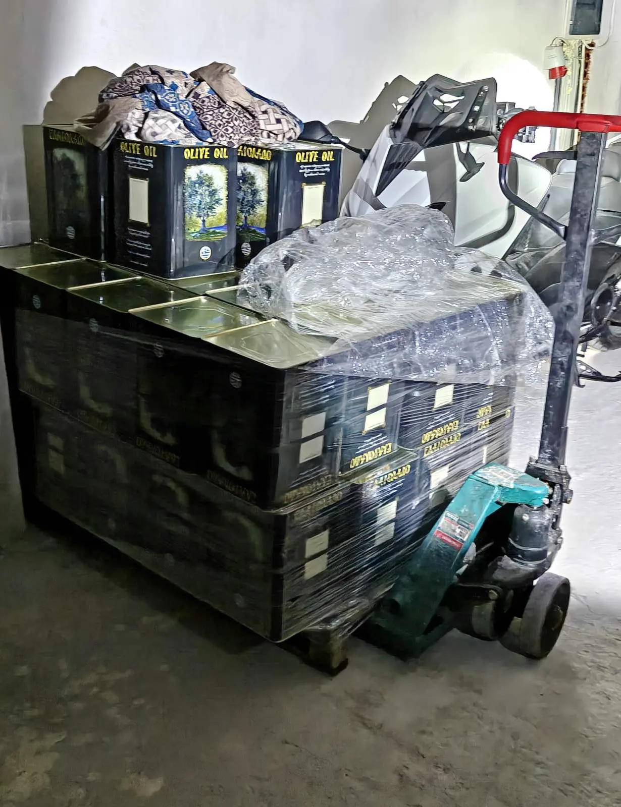 Στο πλαίσιο των ερευνών, οι αστυνομικοί κατέσχεσαν 2.125 λίτρα ελαίων, εκ των οποίων τα 600 ήταν ήδη τυποποιημένα, καθώς και 17.750 ευρώ σε μετρητά. Επίσης, βρέθηκαν πλήθος πωμάτων, χαρτοκιβωτίων και ένα παλετοφόρο, στοιχεία που καταδεικνύουν τη βιομηχανική κλίμακα της παράνομης δραστηριότητας.