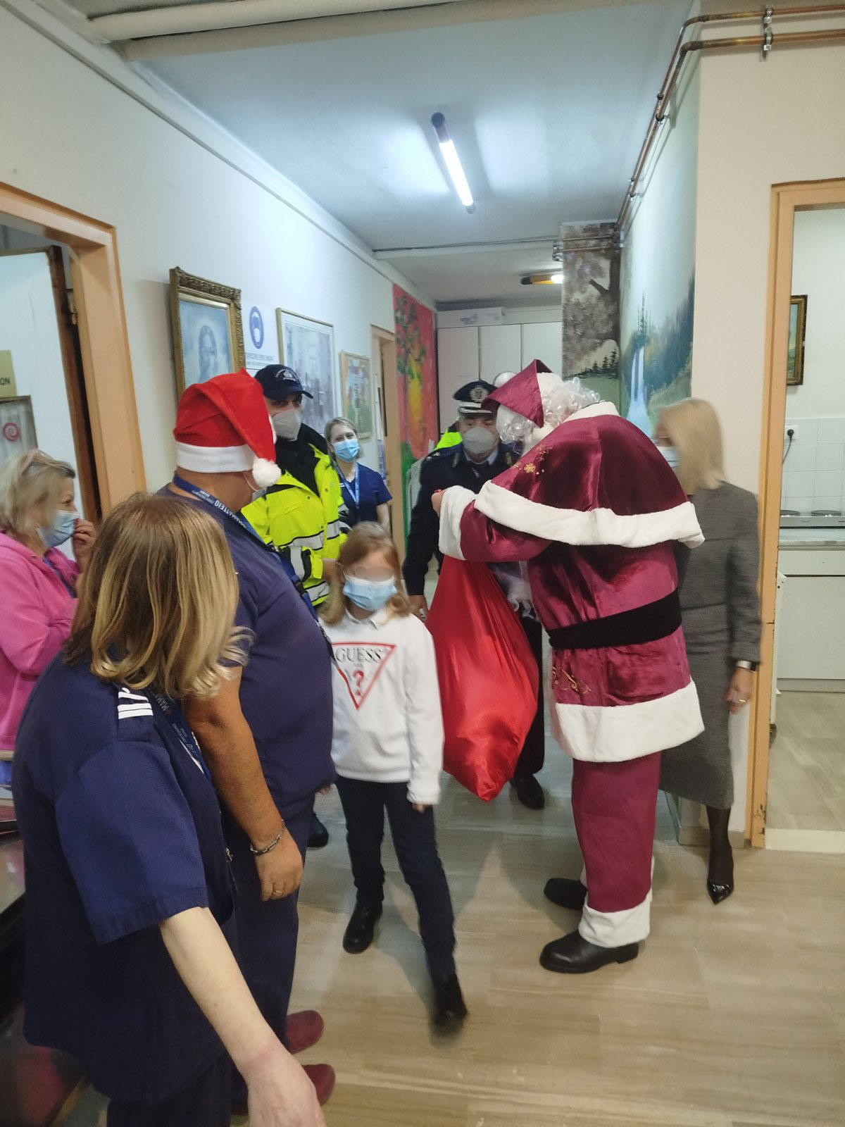 Στο πλαίσιο των εορταστικών δράσεων κοινωνικού χαρακτήρα, αστυνομικοί του Τμήματος Τροχαίας Κοζάνης επισκέφθηκαν την Παιδιατρική Κλινική του Γενικού Νοσοκομείου Κοζάνης συνοδεύοντας τον Άγιο Βασίλη. Η πρωτοβουλία είχε ως στόχο την ενίσχυση της αλληλεγγύης και την προσφορά δώρων και ευχών στα παιδιά που νοσηλεύονται κατά την περίοδο των εορτών, δημιουργώντας ένα κλίμα αισιοδοξίας και χαράς.