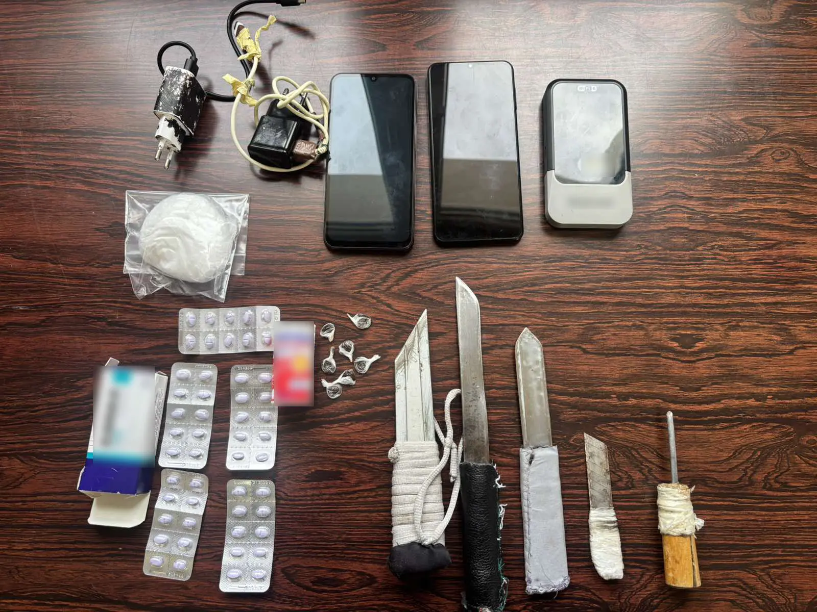 Κατά τη διάρκεια των εξονυχιστικών ελέγχων, οι αστυνομικοί ήρθαν αντιμέτωποι με ένα πλήρες οπλοστάσιο και σημαντικές ποσότητες ναρκωτικών. Συγκεκριμένα, κατασχέθηκαν 8 αυτοσχέδια μαχαίρια, σουβλιά, κατσαβίδια και ένας μεταλλικός σωλήνας, αντικείμενα που αποτελούν άμεση απειλή για την ακεραιότητα προσωπικού και εγκλείστων.