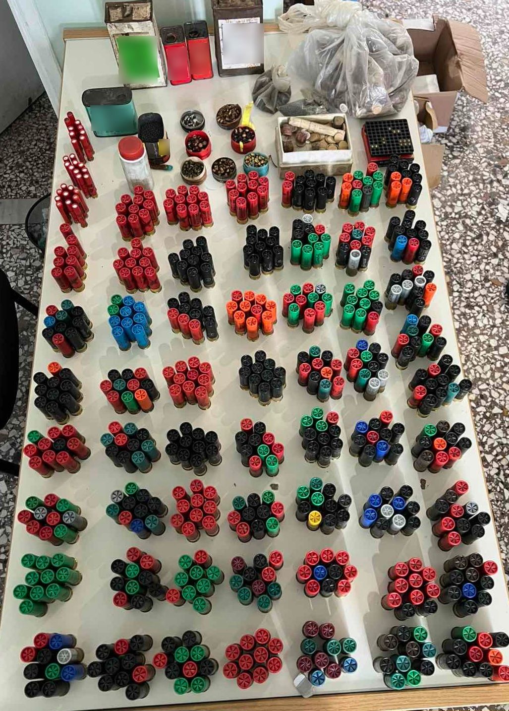 - Βρέθηκαν επίσης 687 φυσίγγια, πυρίτιδα και υλικά αναγόμωσης.