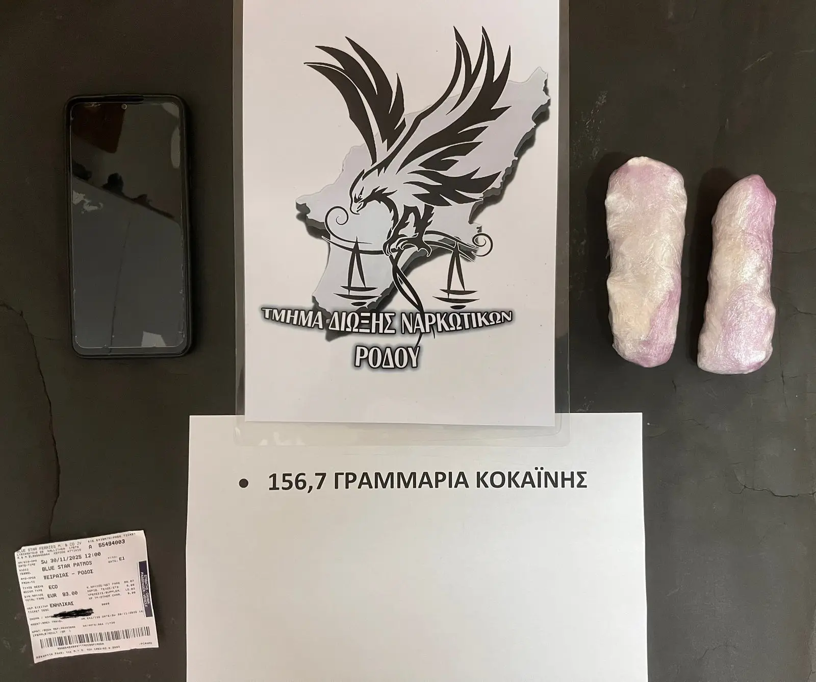 Μια 47χρονη ημεδαπή συνελήφθη σήμερα το πρωί στη Ρόδο από αστυνομικούς του Τμήματος Δίωξης Ναρκωτικών, κατηγορούμενη για κατοχή και μεταφορά ναρκωτικών ουσιών με σκοπό τη διακίνηση. Κατά τον έλεγχο που πραγματοποιήθηκε κατά την άφιξή της στο νησί με πλοίο από τον Πειραιά, κατασχέθηκαν 156,7 γραμμάρια κοκαΐνης.