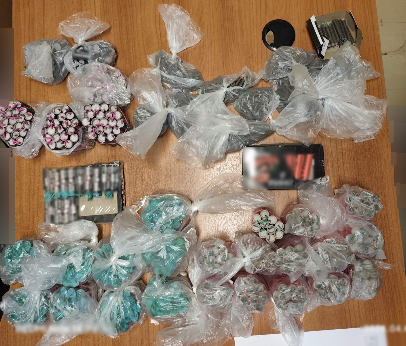 Η αστυνομική έρευνα δεν περιορίστηκε στον δρόμο, καθώς ακολούθησαν επισταμένες έρευνες στις οικίες των κατηγορουμένων. Εκεί, οι αστυνομικοί εντόπισαν επιπλέον 369 κροτίδες, ανεβάζοντας τον συνολικό αριθμό των κατασχεθέντων ειδών στα 794 τεμάχια.