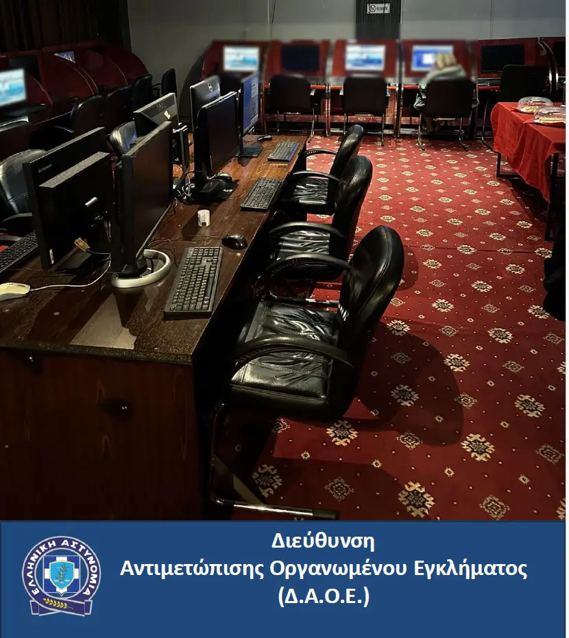 Η Υποδιεύθυνση Αντιμετώπισης Οργανωμένου Εγκλήματος Βορείου Ελλάδος εξάρθρωσε σημείο παράνομης διεξαγωγής τυχερών παιγνίων στη Θεσσαλονίκη, προχωρώντας στη σύλληψη τεσσάρων ατόμων και την κατάσχεση 21 ηλεκτρονικών υπολογιστών. Η επιχείρηση αποκάλυψε ένα οργανωμένο σύστημα χειραγώγησης μέσω κεντρικού server, ενώ διαπιστώθηκαν και σοβαρές παραβάσεις της ασφαλιστικής νομοθεσίας.