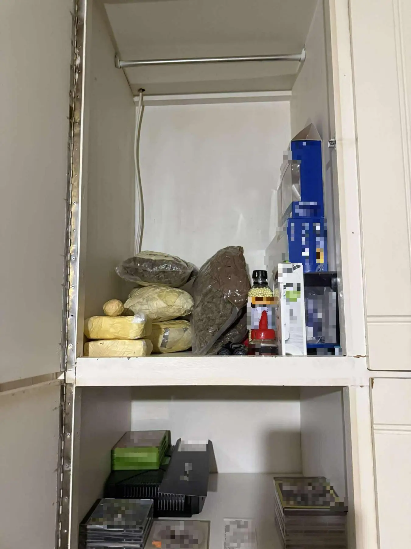 Στα πλαίσια των ερευνών βρέθηκαν και κατασχέθηκαν συνολικά περίπου 3.750 γραμμάρια χασίς (ακατέργαστη κάνναβη), 1.004 γραμμάρια κοκαΐνης και 488 γραμμάρια κατεργασμένης κάνναβης σε μορφή «σοκολάτας». Επιπλέον κατασχέθηκαν 99 ναρκωτικά χάπια, αεροβόλο όπλο-ρέπλικα με μεταλλικά σφαιρίδια και 21 φυσίγγια πυροβόλου όπλου.