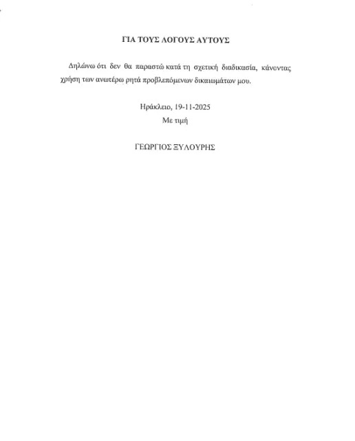 Τους λόγους για τους οποίους δεν θα παραστεί στην σημερινή συνεδρίαση της Εξεταστικής Επιτροπής για τον ΟΠΕΚΕΠΕ γνωστοποιεί με υπόμνημα που κατέθεσε πριν από λίγο ο Γιώργος Ξυλούρης, επονομαζόμενος ως ”Φραπές”, επικαλούμενος το δικαίωμα της σιωπής. Υπενθυμίζεται πως σήμερα, Πέμπτη 20/11 στην αίθουσα 223 του Κοινοβουλίου είχε προγραμματιστεί η κατάθεση του ”Φραπέ” αλλά και του Ανδρέα Στρατάκη, γνωστού ως ”Χασάπη”.