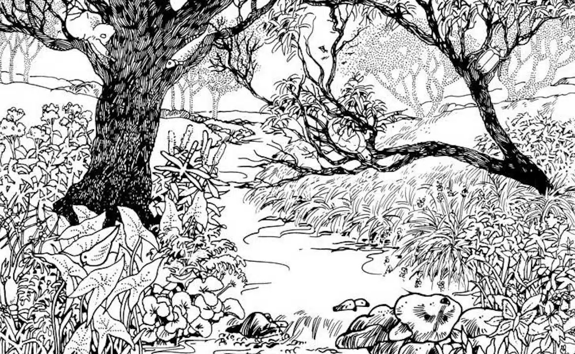Το πρόσωπο κρύβεται μέσα στο σκίτσο ενός πυκνού δάσους. Έτσι, το πιο δύσκολο κομμάτι σε αυτήν την οπτική ψευδαίσθηση είναι να εντοπίσεις το κορίτσι μέσα στο δάσος γεμάτο με διαφορετικά ζώα