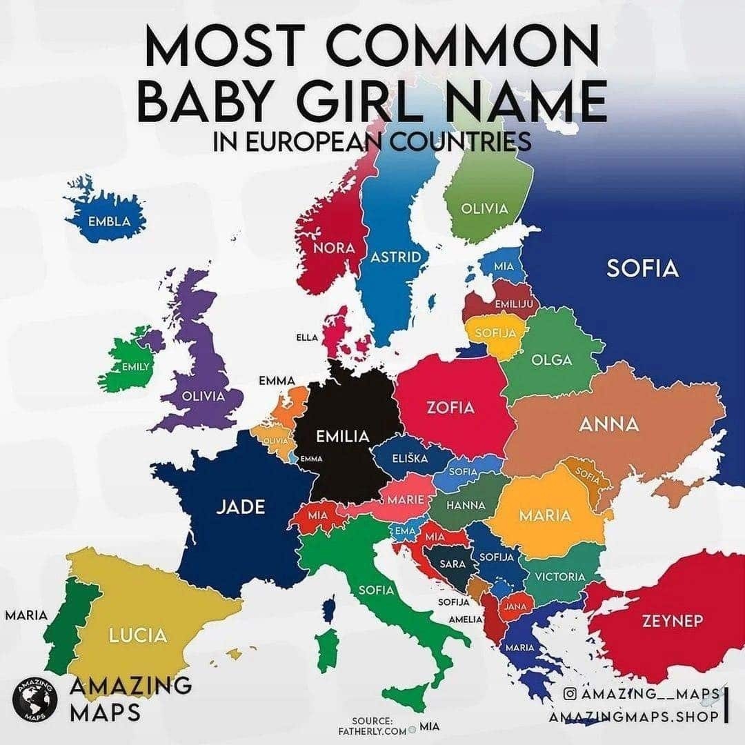 Το όνομα συνοδεύει έναν άνθρωπο σε όλη του τη ζωή και συχνά αντικατοπτρίζει τις παραδόσεις και τις τάσεις κάθε χώρας. Ένας ιδιαίτερα ενδιαφέρων χάρτης που παρουσιάζει το δημοφιλέστερο όνομα για κορίτσια σε κάθε ευρωπαϊκή χώρα κυκλοφόρησε πρόσφατα, και τα αποτελέσματα εντυπωσιάζουν.