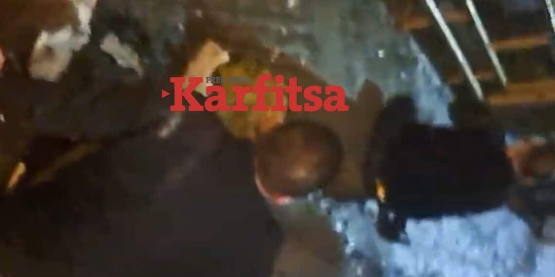 Οι δύο αλλοδαποί διαρρήκτες, 33 και 35 ετών, βρίσκονται στο έδαφος, έχουν τραυματιστεί λόγω της σφοδρής πτώσης και σφαδάζουν από τους πόνους. Από την πτώση τους, όπως φαίνεται στα βίντεο, έχουν συμπαρασύρει κάγκελα και γλάστρες από το μπαλκόνι.