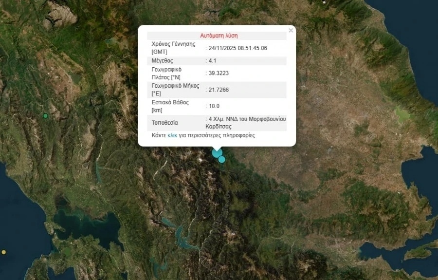 Σεισμός 4,1 Ρίχτερ στην Καρδίτσα