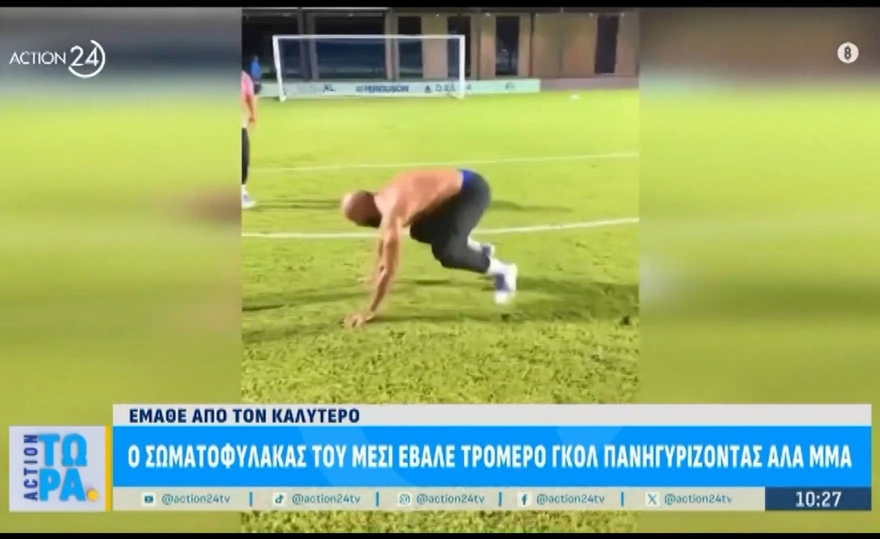 Εντυπωσιακό γκολ και ένας πανηγυρισμός που ξεχώρισε: σε βίντεο που προβλήθηκε στην εκπομπή Action Τώρα απεικονίζεται ο σωματοφύλακας του Λιονέλ Μέσι να βρίσκει δίχτυα και στη συνέχεια να εκτελεί έναν πανηγυρισμό με χαρακτηριστικά του Μικτών Πολεμικών Τεχνών.